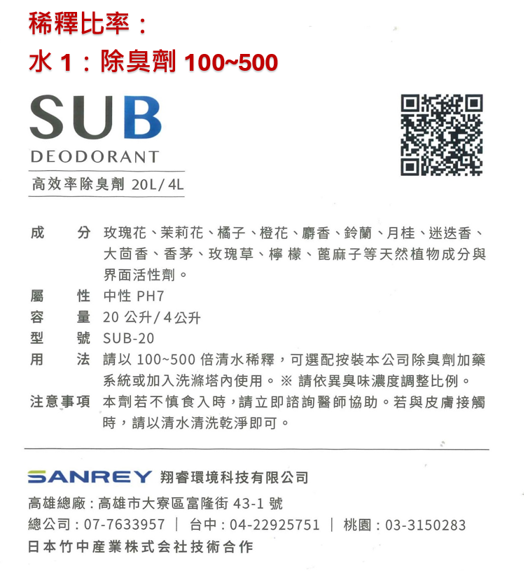 - Product Type: 高效率除臭劑SUB